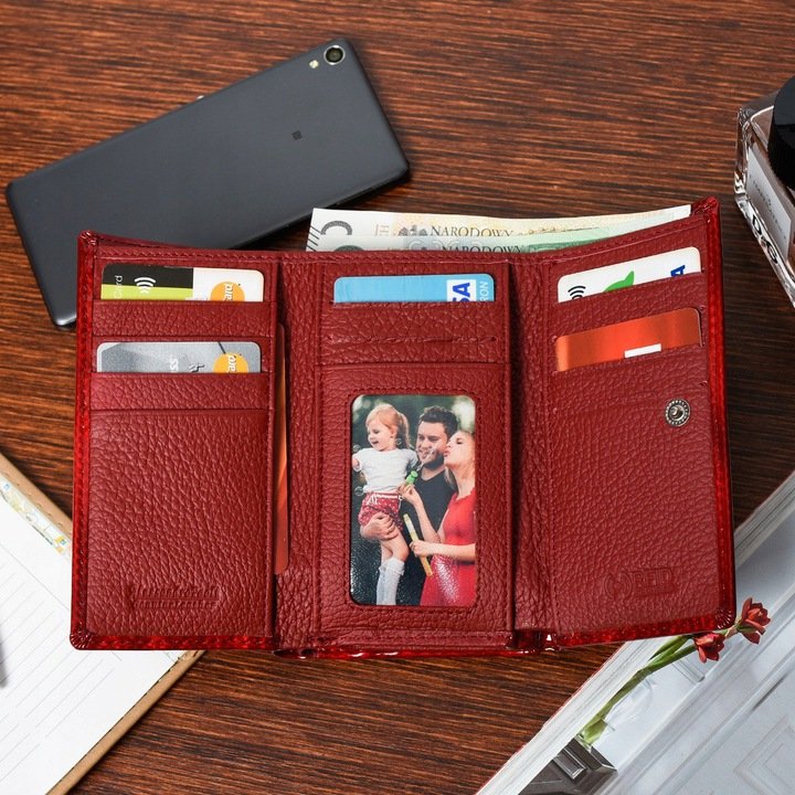 Vysoko kvalitná dámska peňaženka z kože, priestranná a prehľadná v červenej farbe.