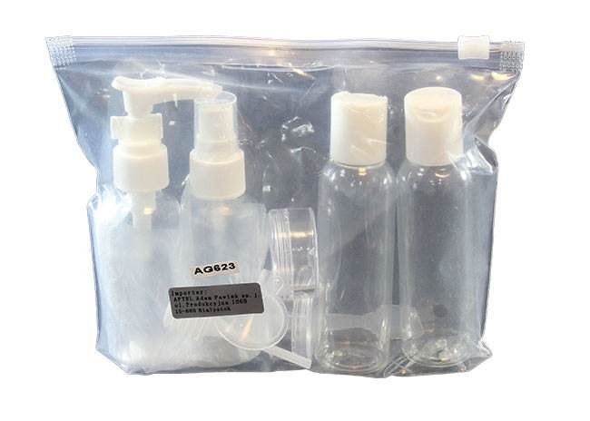 Súprava fľaštičiek v uzatvárateľnom puzdre, ktoré využijete na viacdenné výlet, služobnú cestu, pre deti na tábor,, ... Zo svojich obľúbených kozmetických prípravkov si vezmete len potrebné množstvo a ušetríte miesto v batožine. Tento cestovný set spĺňa kritériá pre batožinu do lietadla. Hodí sa pre prevážanie šampónov, krémov, gélov, voňaviek a iných hygienických pomôcok.