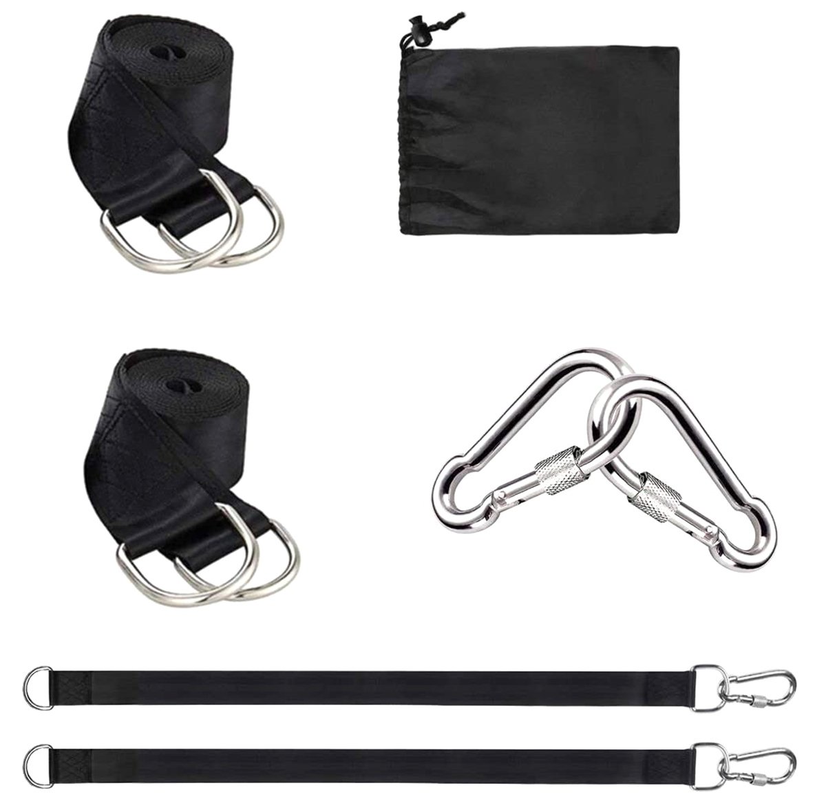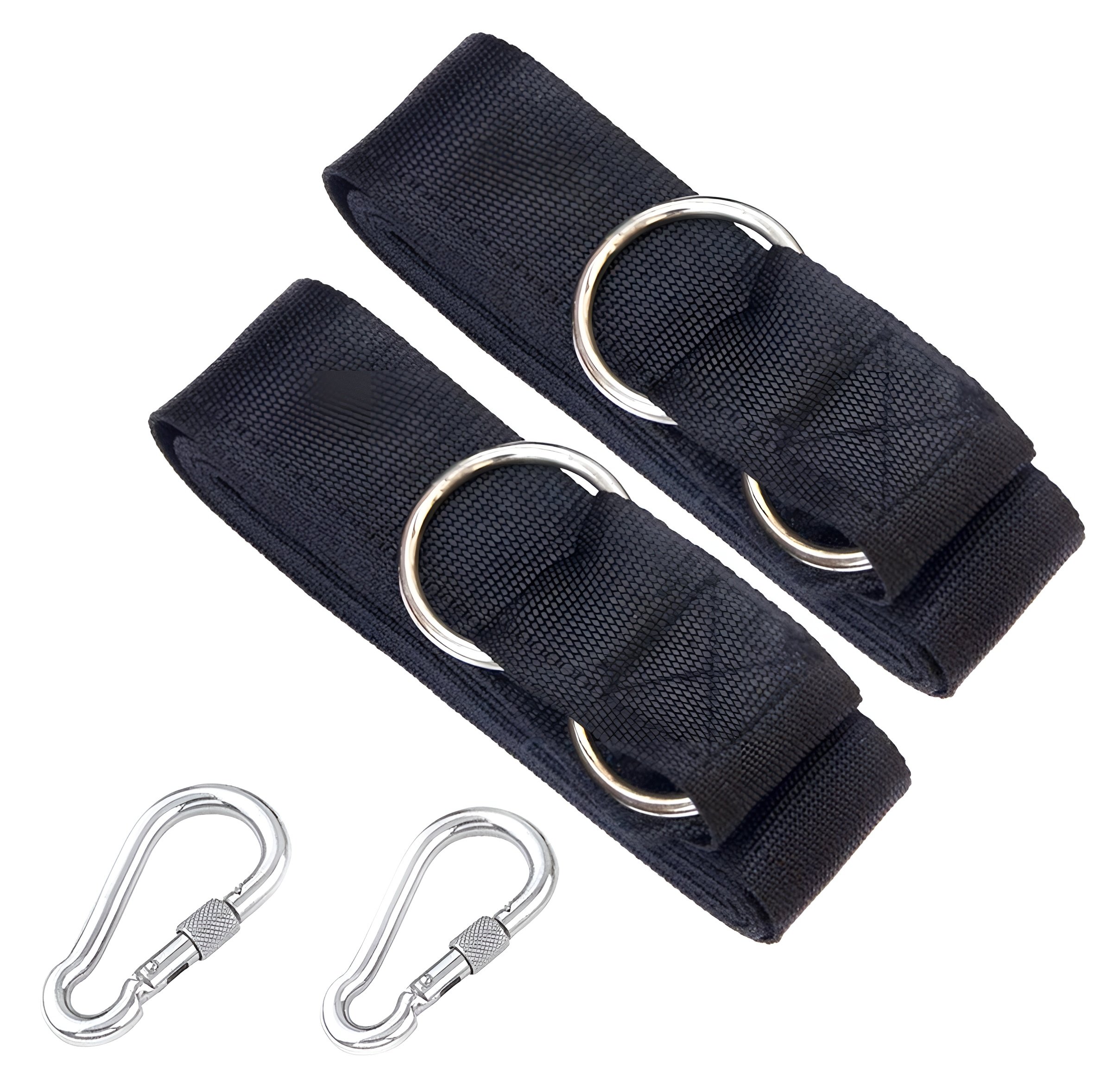Dva upevňovacie popruhy na zavesenie hojdacej siete alebo hojdačky. Vybavené oceľovými prackami a dvoma prídavnými karabínami.