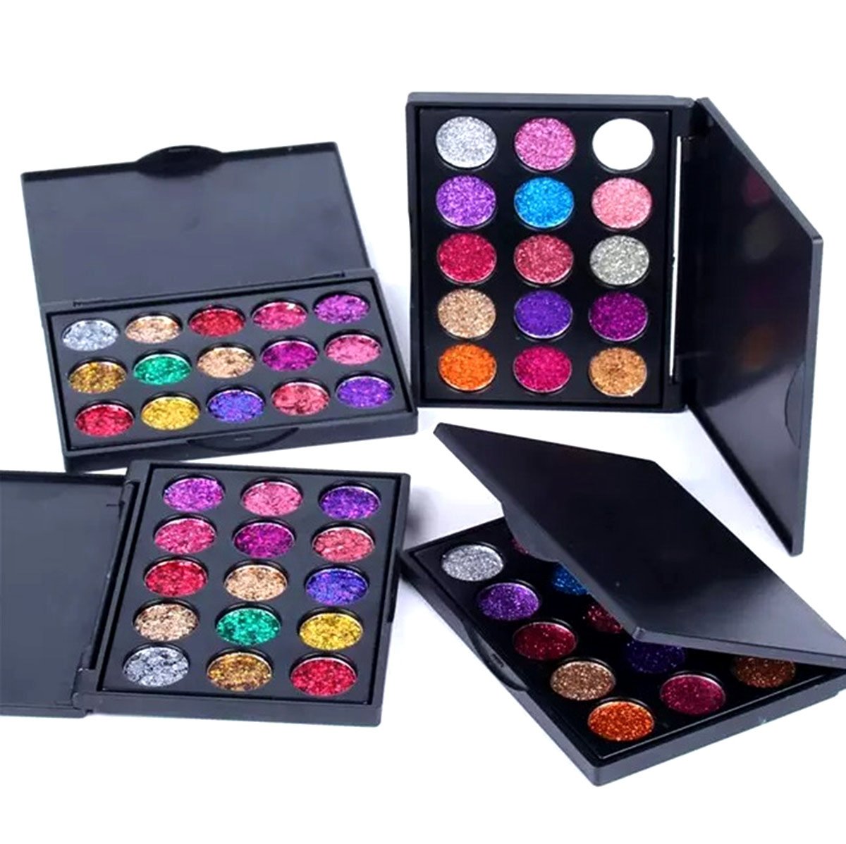 Sada 15ks lesklých očných tieňov s trblietavým efektom. Uzavreté v elegantnej čiernej krabičke umožňuje vytvoriť dokonalý očný make-up. Rozmanitosť farieb vám umožní vybrať si make-up na každú príležitosť. Tiene sú extrémne účinné a odolné, pri nanášaní a ďalšom používaní sa nerozmazávajú. Všetky tiene v sade je možné zmiešať dohromady a získať tak prakticky akúkoľvek farebnú kombináciu. Vďaka týmto očným tieňom a vhodnému výberu farieb získate mimoriadny očný make-up, ktorý každého prekvapí. Úspešne omladíte svoj vzhľad.