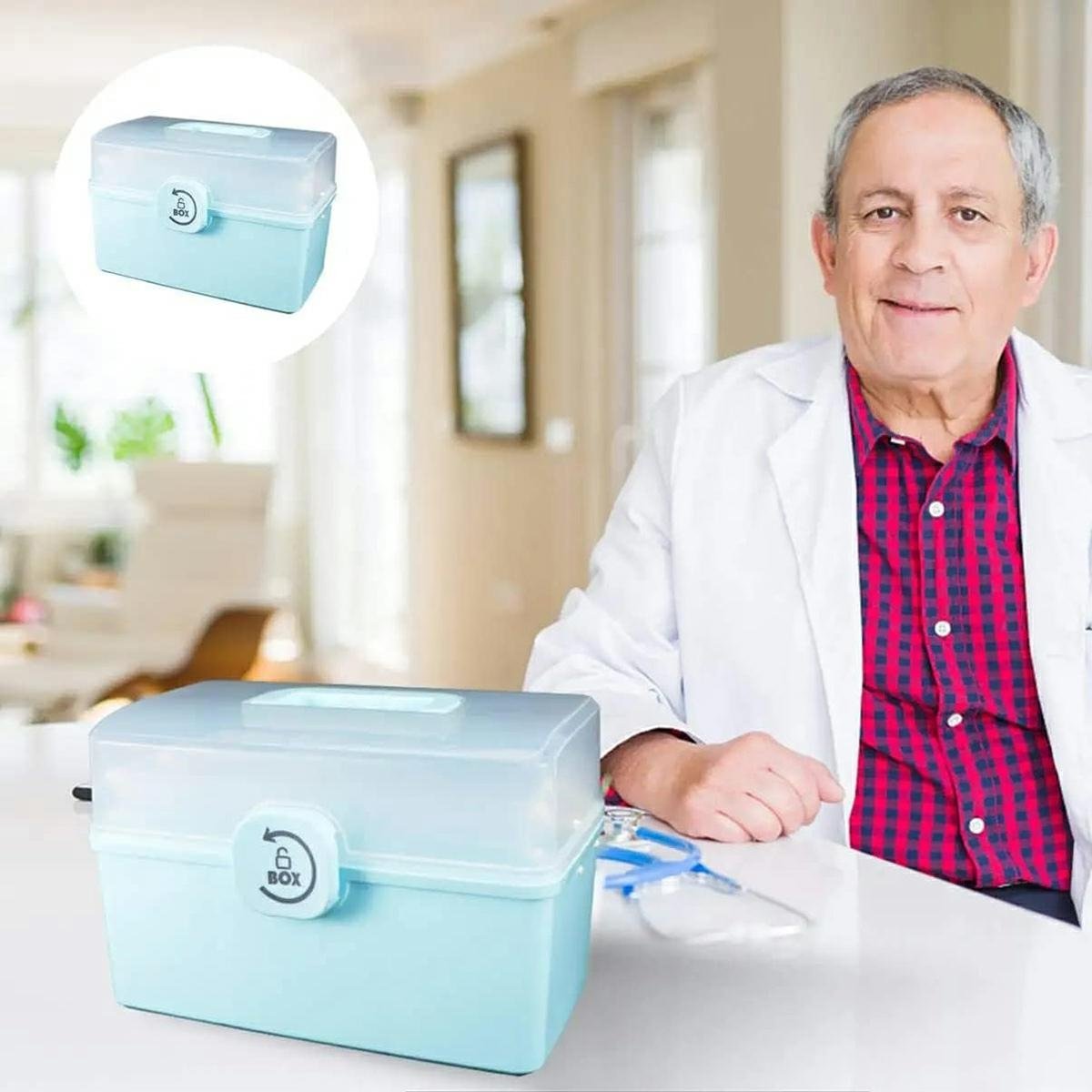 Praktická nádoba, skladacia lekárnička na lieky. Organizér umožňuje pohodlne usporiadať lieky na niekoľko priestranných políc av hlavnej priehradke. Extrémne jednoduché použitie (priehľadný kryt a rukoväť). Nádoba má špeciálny zámok, aby ju nemohli otvoriť malé deti. Vyrobené z bezpečného plastu, ktorý neprichádza do styku s liekmi.