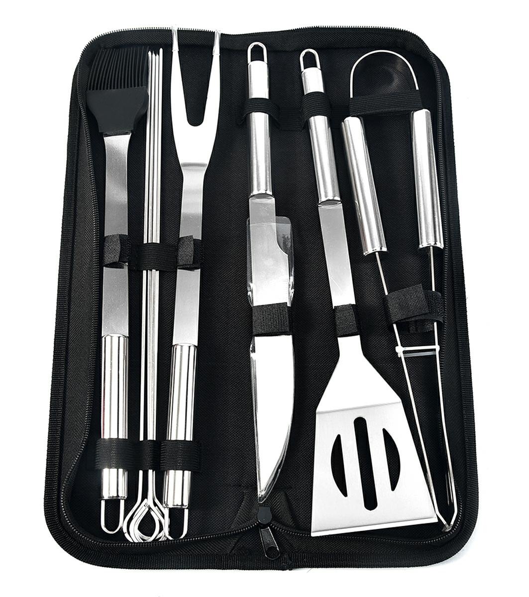 Vysoko kvalitná grilovacie náradie uľahčuje a spríjemňuje prácu na horúcom grile a prípravu grilovaných pokrmov. Sada grilovacieho náčinia obsahuje 9 kusov užitočných prvkov. Celá sada je v estetickom puzdre. Grilovacie náradie možno s úspechom použiť aj v kuchyni - napríklad k pečenie, kde je tiež perfektné.