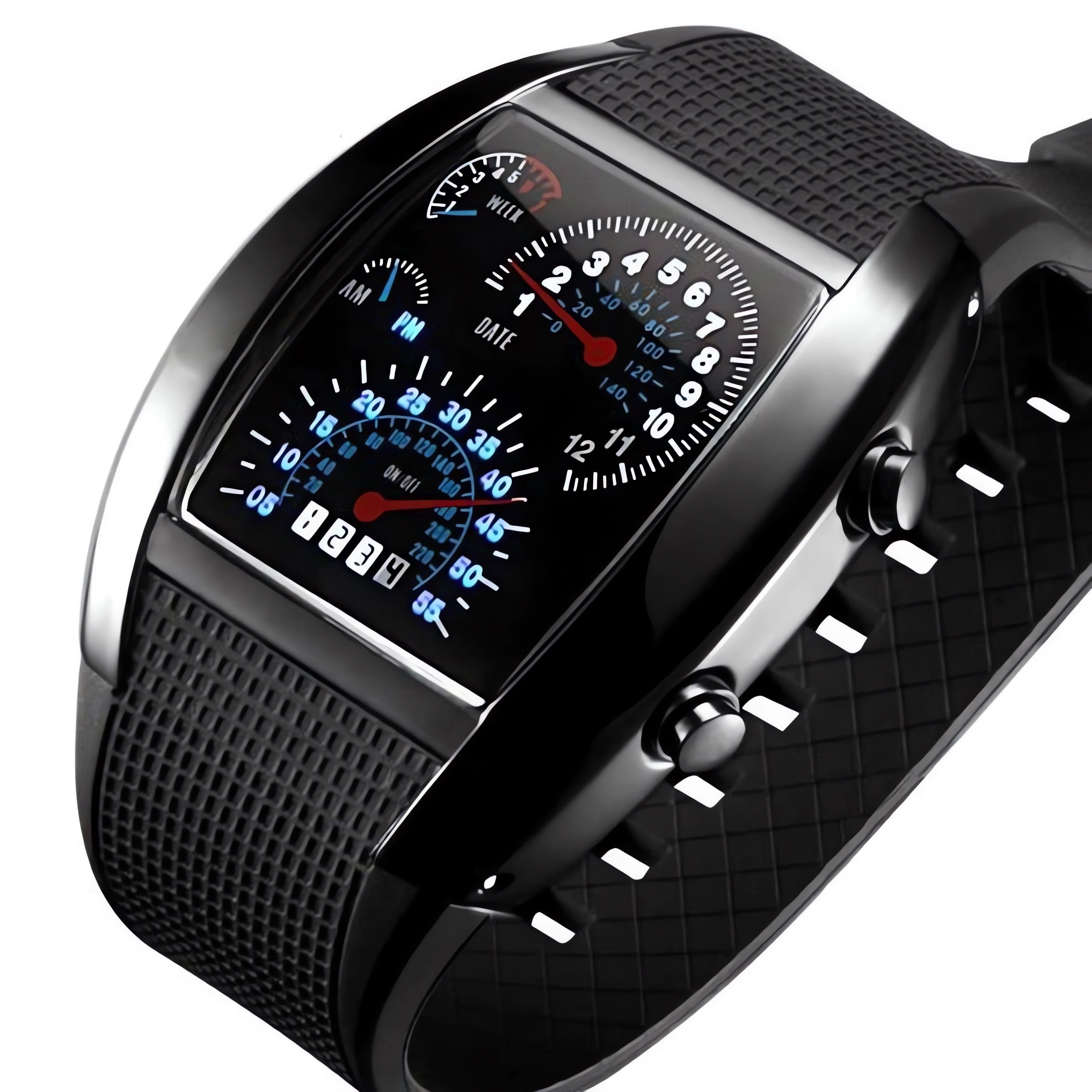 Model binárnych hodiniek s modro svietiacimi diódami! Kovový rám a ochranné sklíčko sú odolné voči poškriabaniu.