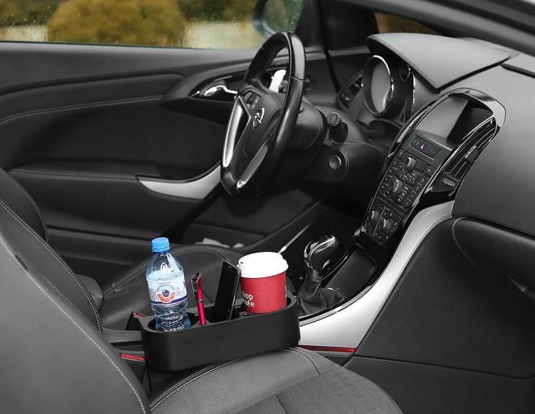 Držiak nápojov a menších predmetov do medzery medzi sedadlo a stredovú konzolu. Odkladací priestor pre dva nápoje, písacie potreby a priestor na uloženie potrebných drobností alebo mobilu.