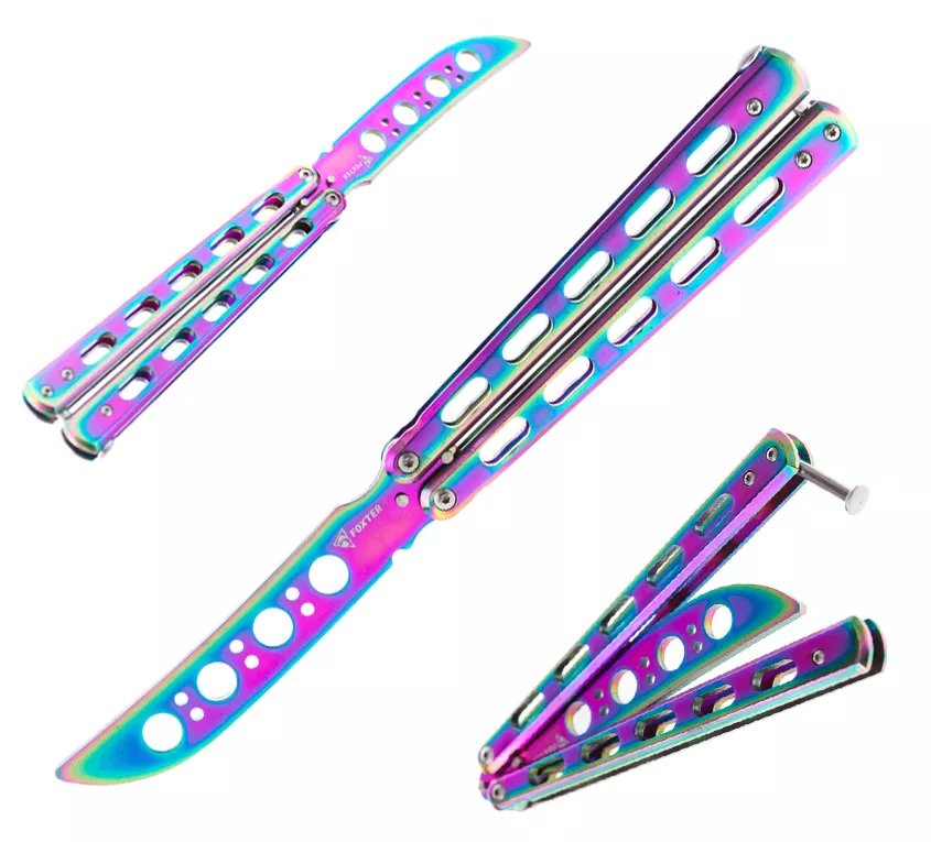Krásne trblietajúce sa všetkými farbami dúhy, motýlí nôž je skvelým tréningovým nástrojom pre začiatočníkov.