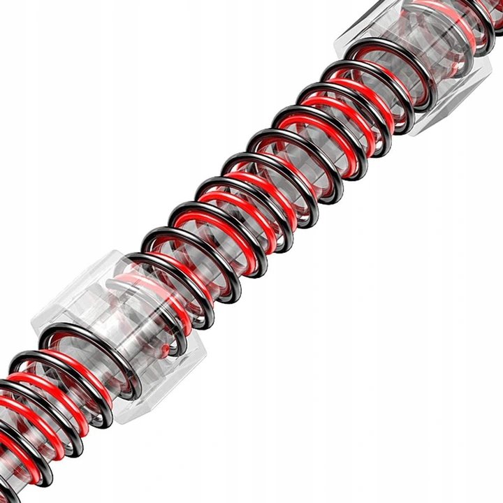 2 typy pružín (červená vnútorné s odporom 8 kg a čierna vonkajšie s odporom 12 kg)