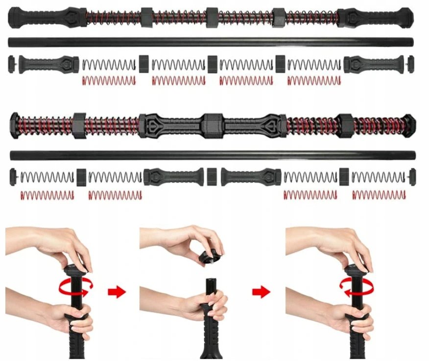 Pružinová posilňovacia tyč s možnosťou natiahnutie a stlačení. Ideálny pre začiatočníkov i pokročilých.