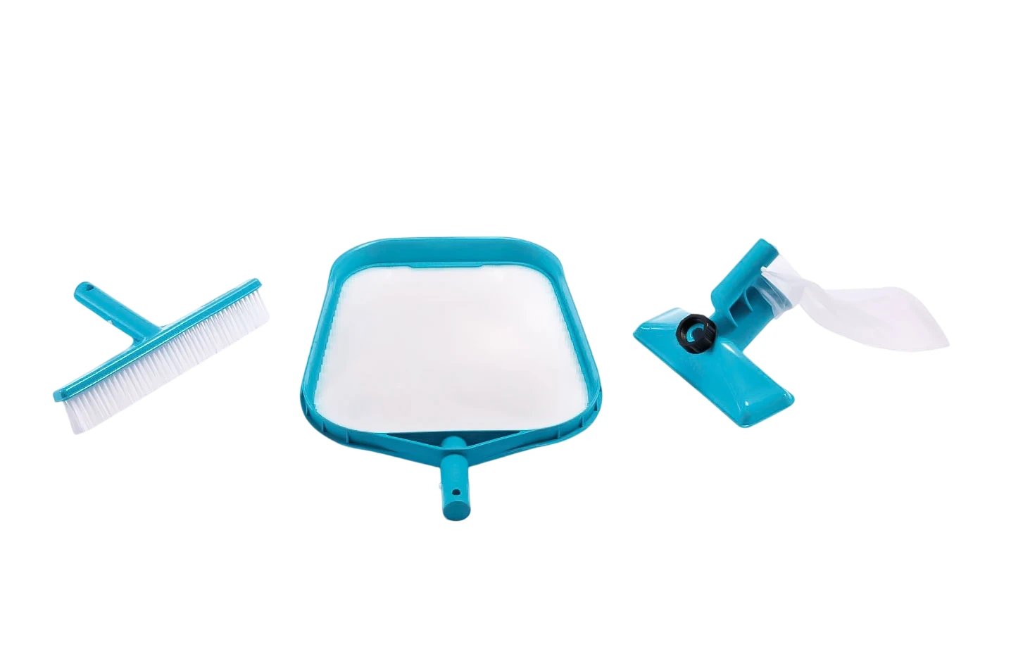 Táto premyslená sada zjednodušuje pravidelnú starostlivosť o bazén a pomáha dlhodobo udržiavať kvalitu vody. Je navrhnutá tak, aby poskytovala praktickú pomoc pri všetkých bežných úkonoch – od zbierania nečistôt na hladine, cez čistenie stien, až po vysávanie dna pomocou prúdu vody zo záhradnej hadice.