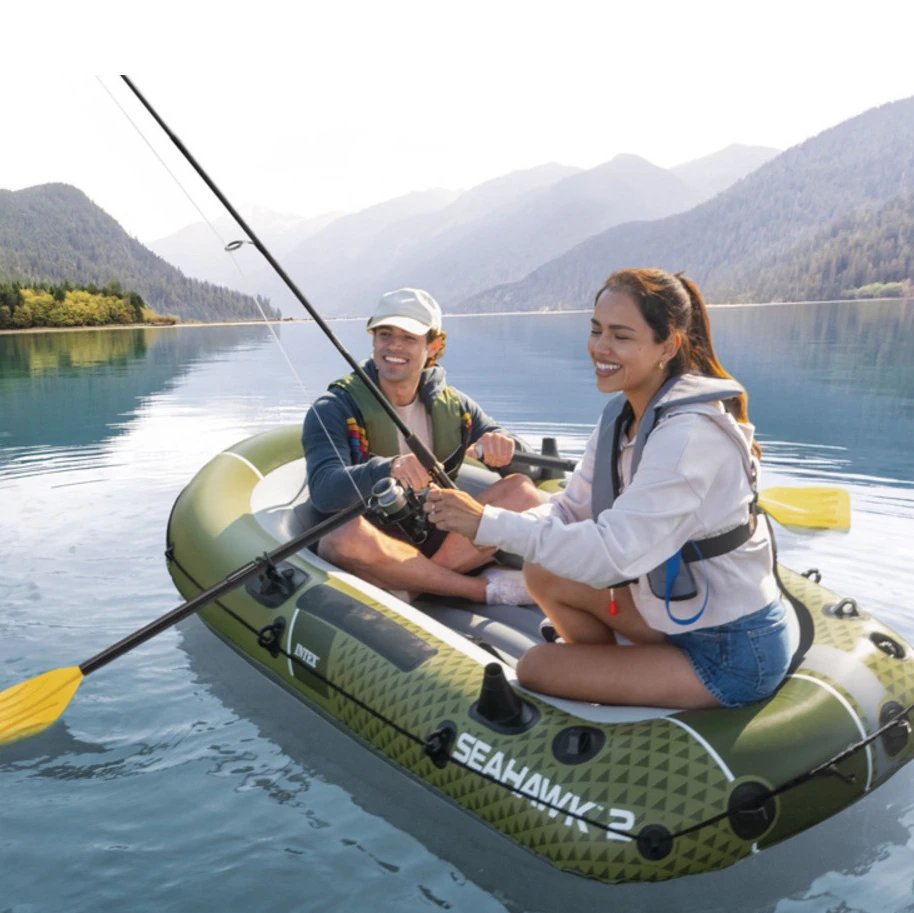 Nafukovacia loď INTEX Seahawk 2 je určená pre dve osoby a predstavuje praktické riešenie pre aktívne chvíle pri vode. Vyznačuje sa odolným materiálom z PVC s hrúbkou 0,50 mm a premyslenou konštrukciou zaisťujúcou stabilitu aj pohodlie. Vďaka trom nezávislým vzduchovým komorám zvyšuje bezpečnosť pri používaní, a to aj v prípade lokálneho poškodenia jednej komory. Podlaha s konštrukciou i-Beam zvyšuje komfort sedenia a celkovú stabilitu člna.