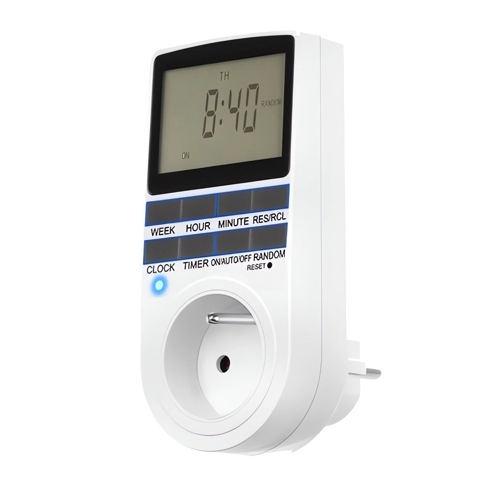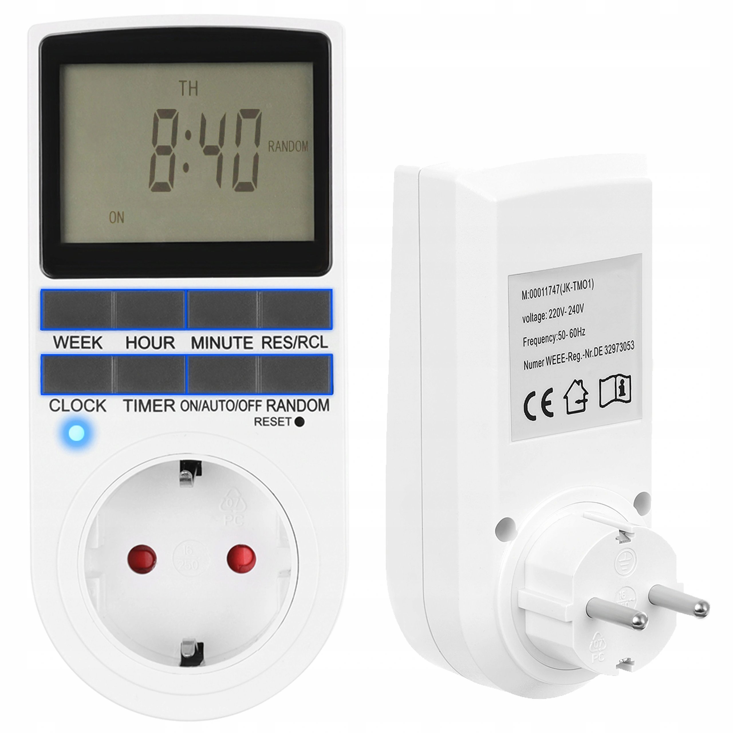 Pomocou tejto digitálnej časovej zásuvky môžete v nastavených časoch vypínať a zapínať spotrebiče pripojené do siete. Tento časový spínač má denný aj týždenný spínací cyklus, veľmi jednoduché ovládanie a vstavané funkcie DTS (letný čas) a RANDOM (náhodné spínanie) + možnosť výberu z 10 prednastavených skupín dní v týždni.