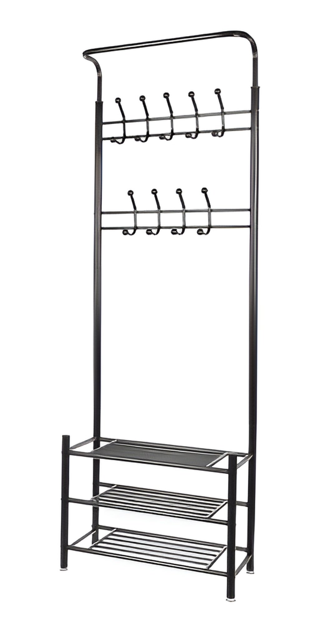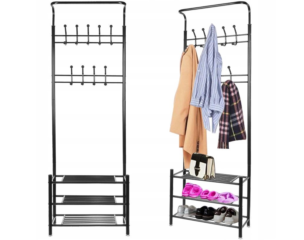 Stojanový věšák na oblečení s botníkem ve spodní části. Ideální do ložnice, haly i na chodbu. Stabilní ocelová konstrukce.