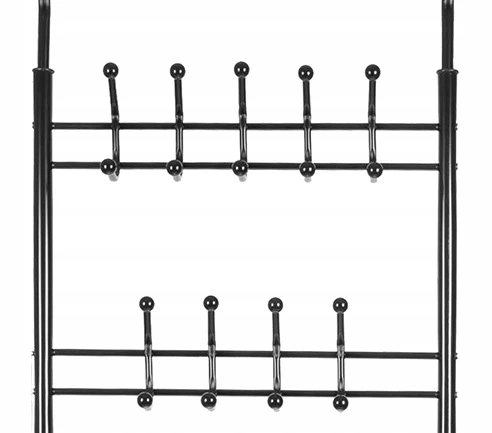 Vešiak je ideálny pre firmu, obchod, kanceláriu a dom. Stabilná konštrukcia na valčekoch umožňuje ľahké posunutie. Jednoduchá montáž. Veľmi praktické police pre topánky.