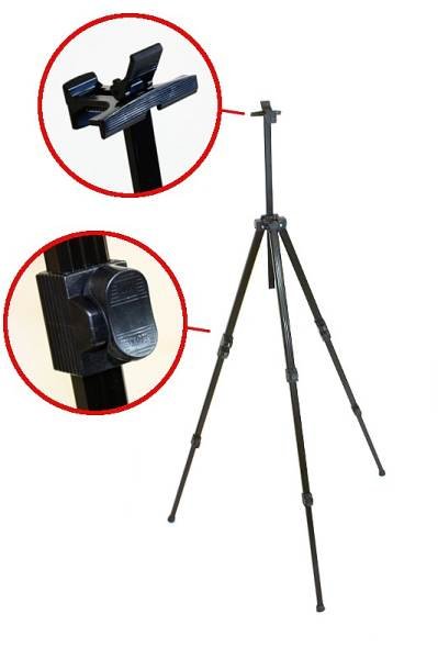 - Zamykanie rozostavenie nôh, takže stojan je možné zriadiť aj v ťažkých podmienkach na neveľkej ploche.