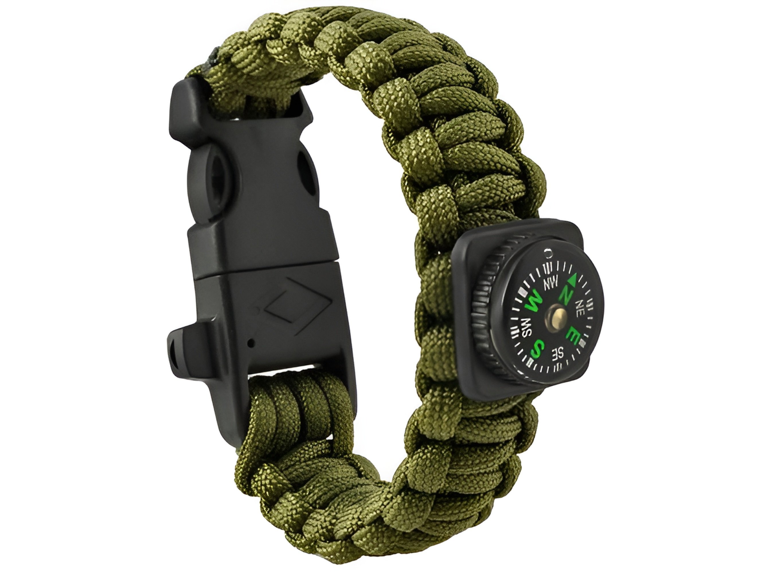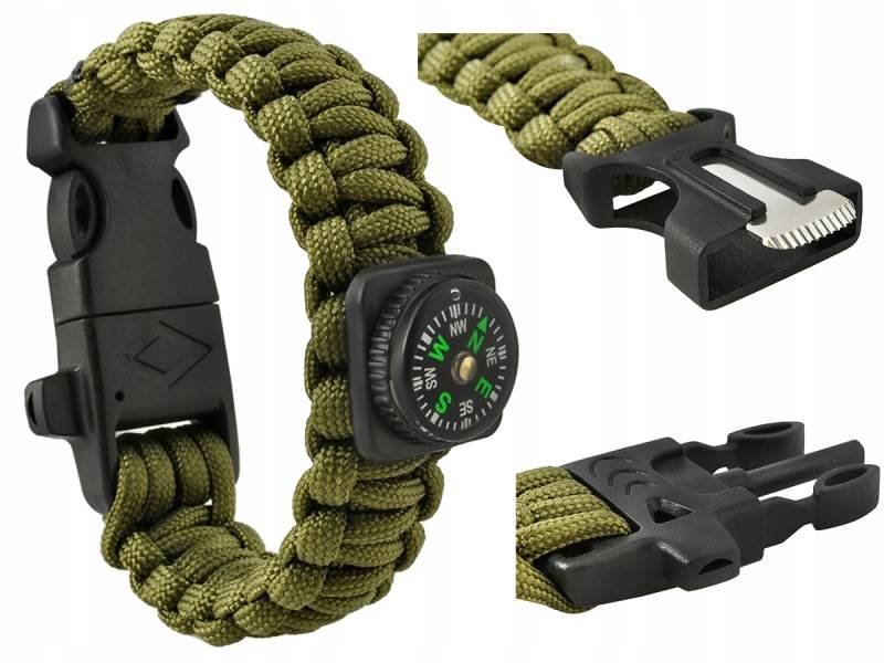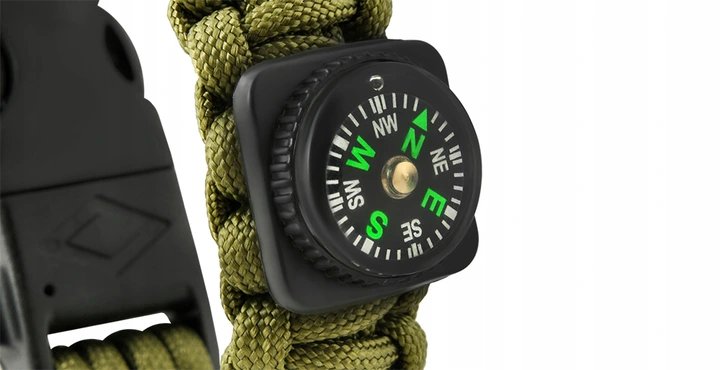 Náramok na prežitie je perfektný pomocník pre každú outdoorovú aktivitu. Je pohodlný na zápästie a vždy máte pri sebe odolnú šnúru, kompas, podpaľovač a bezpečnostné píšťalku.