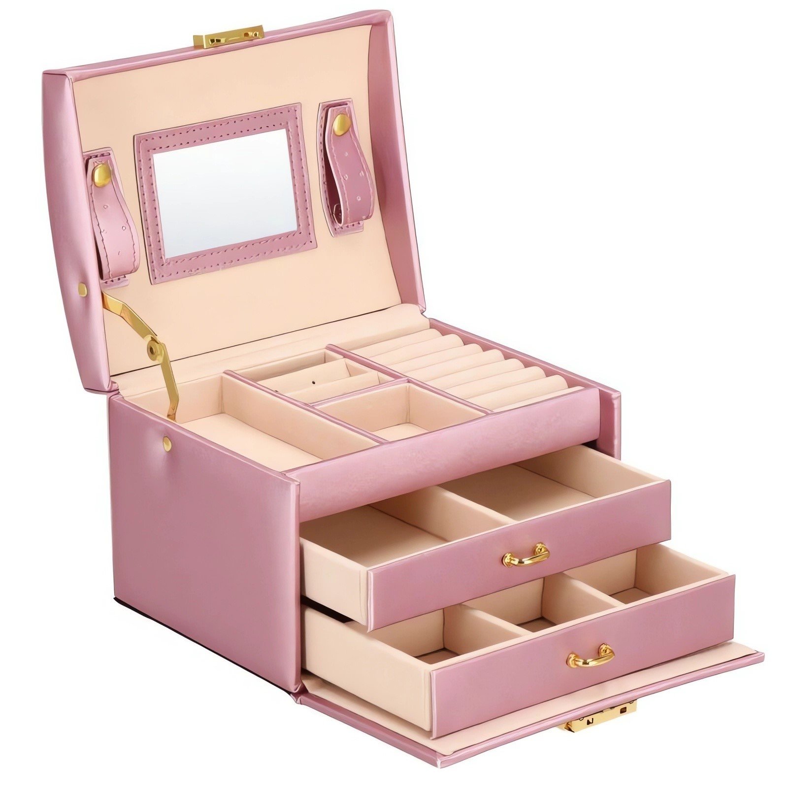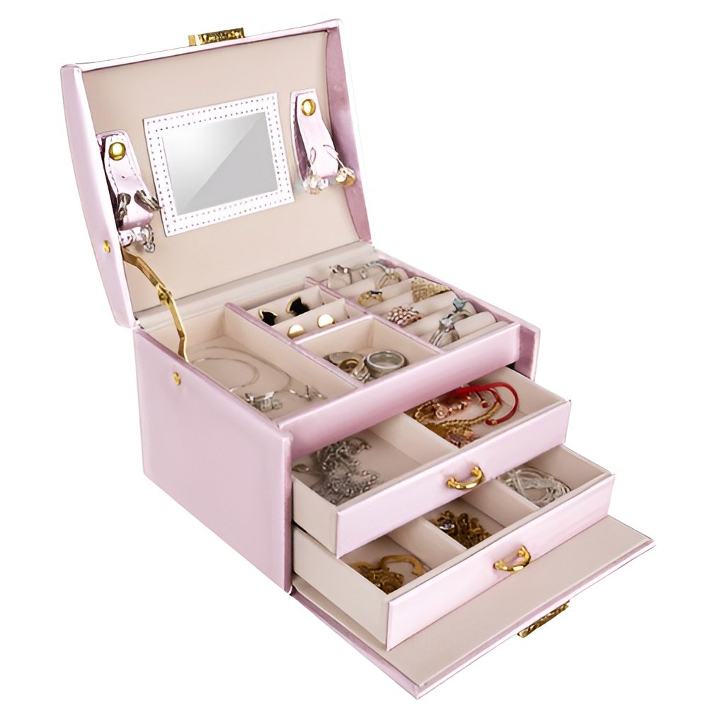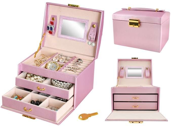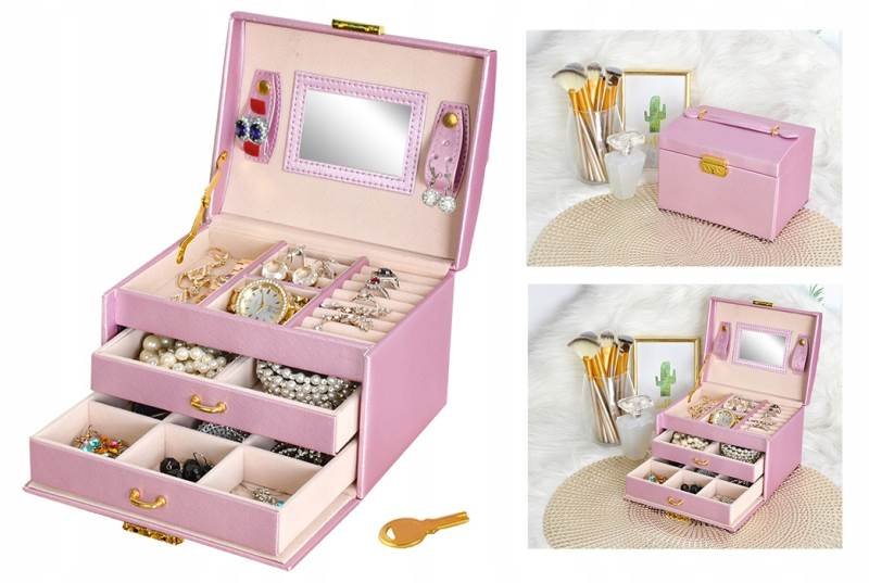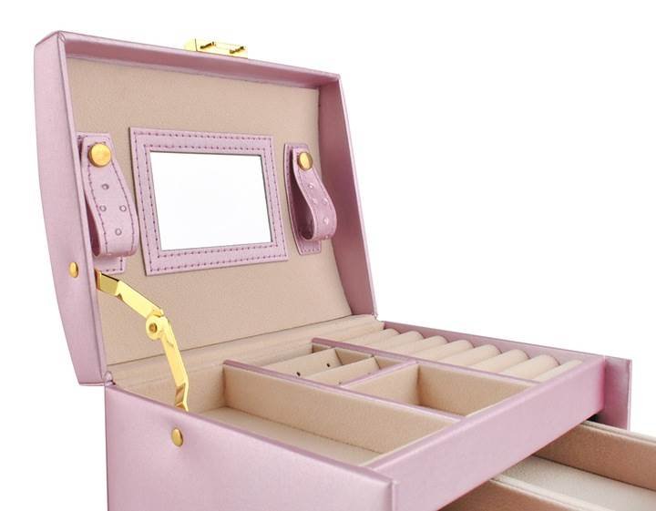 Beautylushh 6400 Šperkovnica so zrkadlom na kľúč ružová
