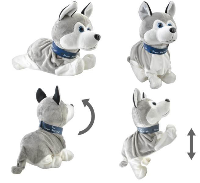 Plyšové šteniatko vie veľa zaujímavých trikov, je obratné a veľmi inteligentný.