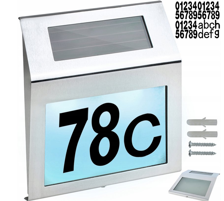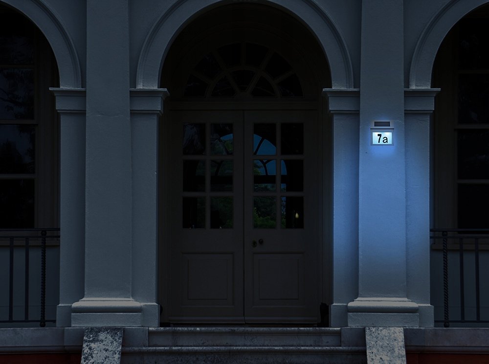 Domové číslo Teraz vašu adresu nikto neprehliadne ani za tmy. Číslice na domovom čísle sú podsvietené LED svetlom, ktoré sa vďaka čidlu zapne automaticky za súmraku. Číslo tak poslúži zároveň aj ako lampa. Osvetlenie je poháňané solárnou energiou, čo v praxi znamená žiadne káble a nulové náklady na prevádzku. Domové číslo má moderný design.