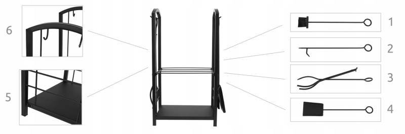Kaminer PK011 Kôš na drevo a krbové náradie 30x40x73cm čierna