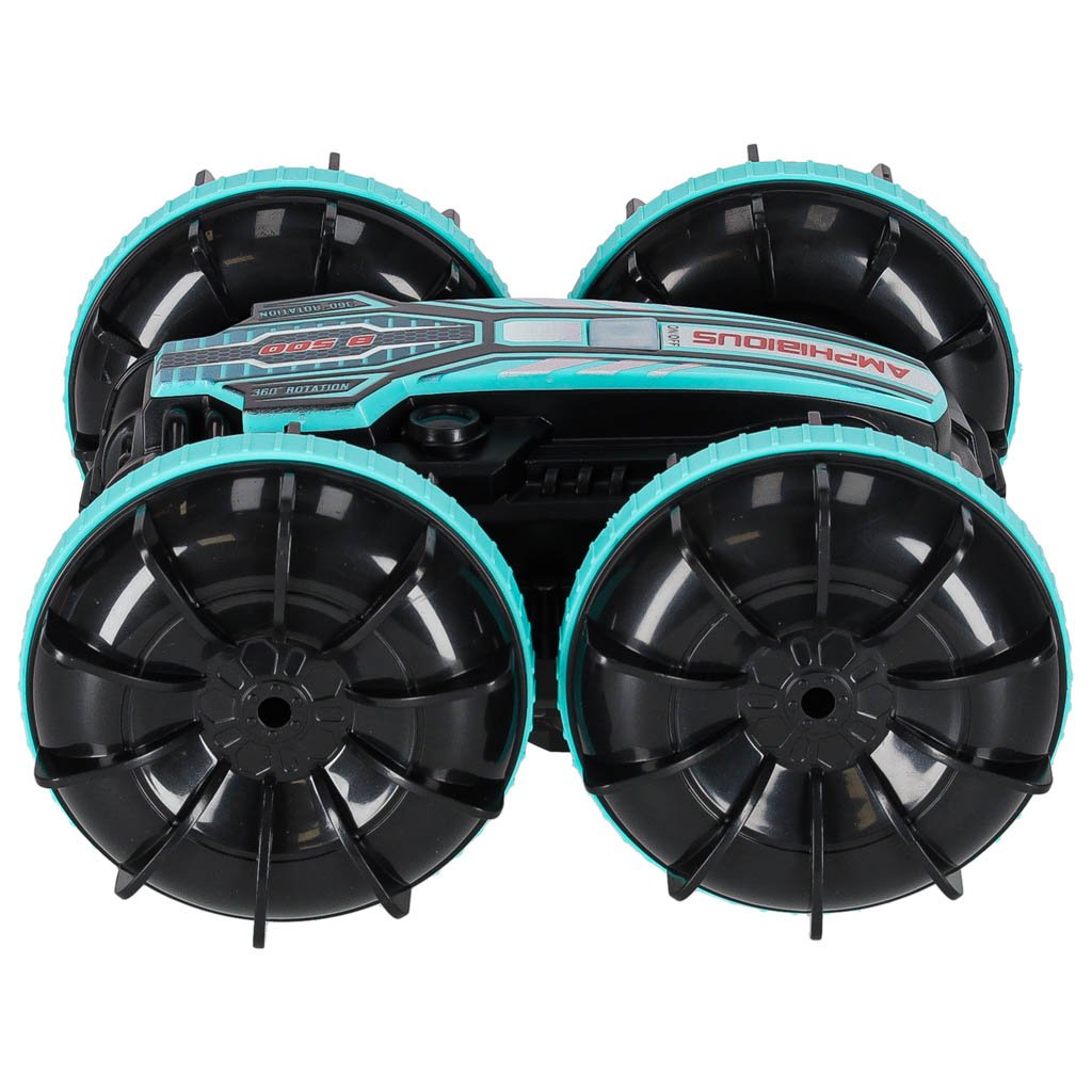 RC Car Amphibious Stunt Car 4×4 je jedinečné terénne vozidlo s pohonom všetkých kolies, ktoré dokáže jazdiť po súši aj po vode! Vďaka špeciálnym kolesám s výrazným dezénom a vodotesnej konštrukcii zvládne akýkoľvek povrch - piesok, trávu, blato aj sneh. Auto dokáže robiť 360° otočky, prevrátenia a kaskadérske kúsky z oboch strán.
