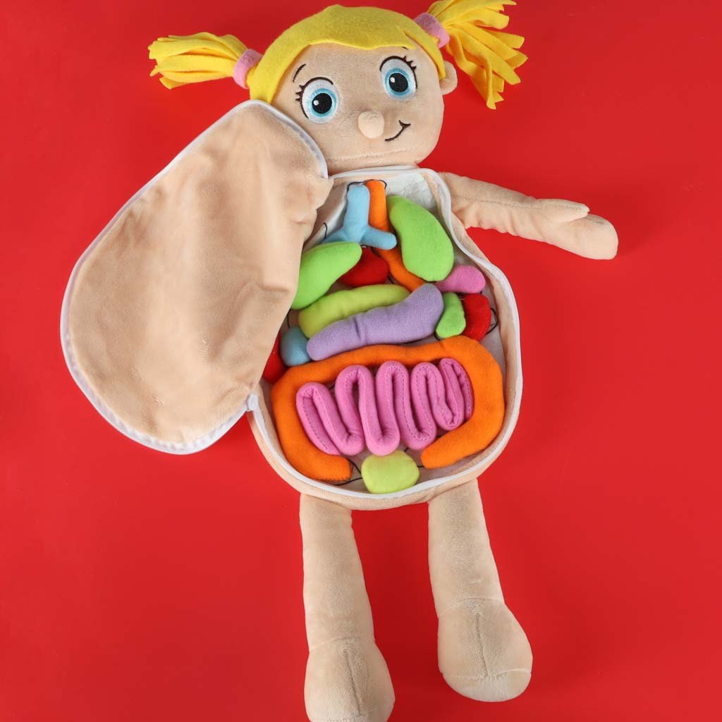 Táto vzdelávacia anatomická bábika chlapca pomáha deťom pochopiť, ako funguje ľudské telo. Rozopnutím bruška možno vidieť a vybrať mäkké orgány (napr. srdce, pľúca, pečeň, žalúdok, črevá).