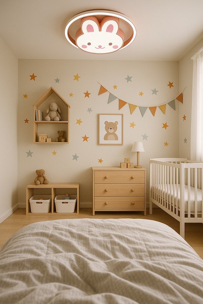 Regulujte jas svetla podľa potreby pomocou diaľkového ovládania, od jemného nočného osvetlenia až po jasnejšie denné svetlo. Jednoduché diaľkové ovládanie umožňuje meniť intenzitu svetla a nastavovať rôzne režimy z pohodlia kresla alebo postele. Roztomilý a hravý motív, ktorý dodá detskej izbe veselú a útulnú atmosféru.
