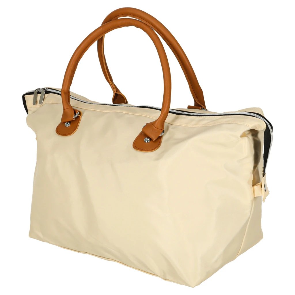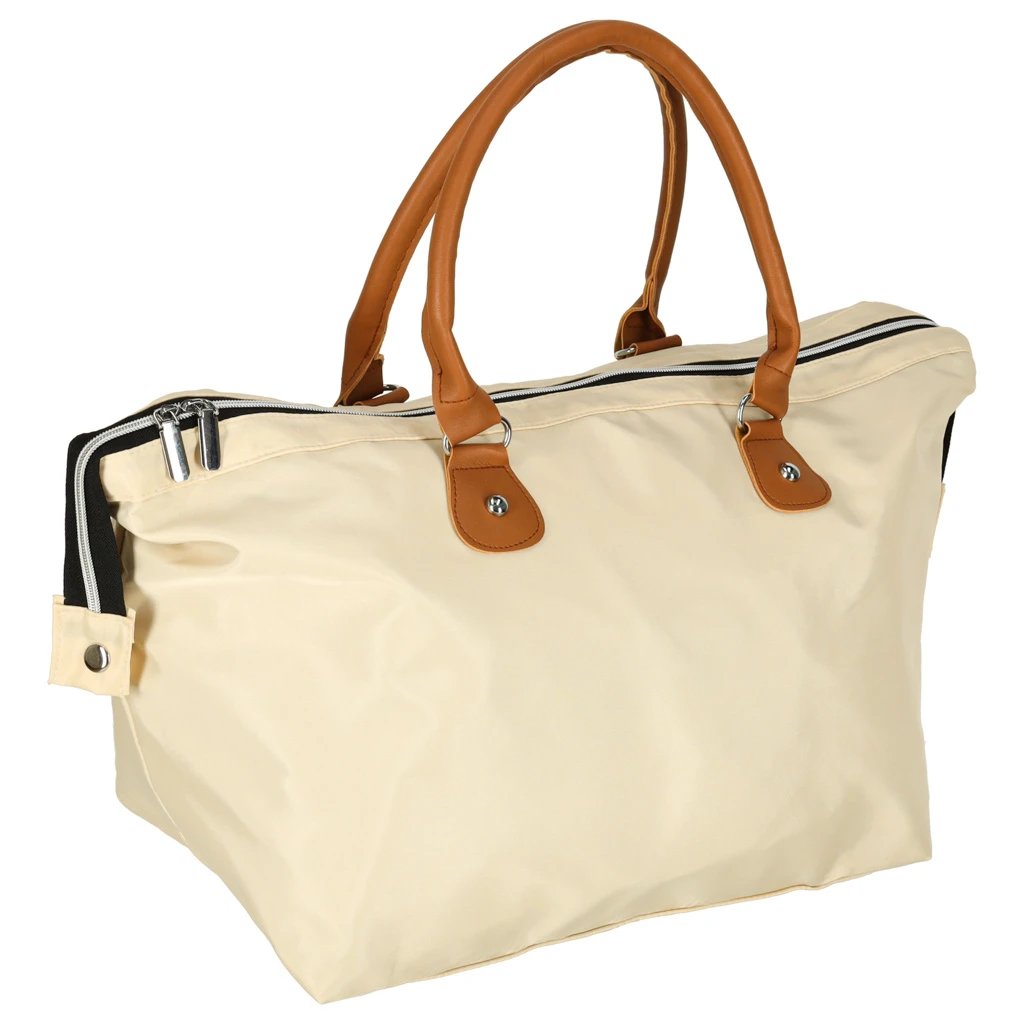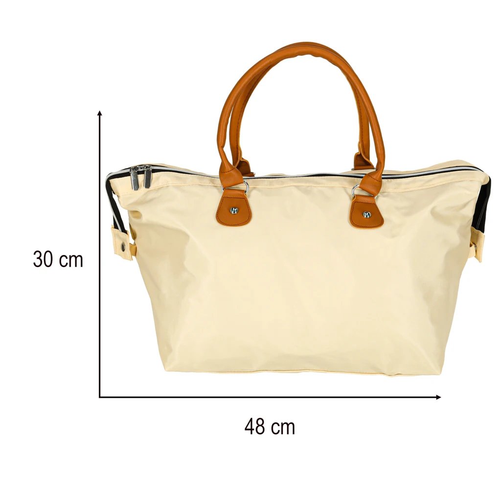 Taška je vyrobená z odolného polyesteru v elegantnej béžovej farbe. Zapínanie je riešené zipsom. Samotná taška má rozmery 48 × 30 × 21 cm, väčšie puzdro 24 × 22 cm a menšie 22 × 11 × 9 cm. Produkt je zabalený vo fólii.
