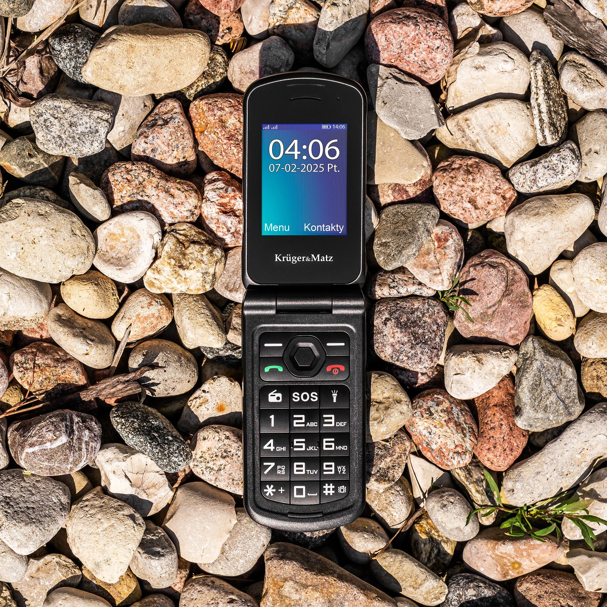 Kruger&Matz KM0466 IRON 5 Flip 4G je klasický mobilný telefón s výklopným displejom, ktorý kombinuje prehľadný 2,4-palcový QVGA displej (240 × 320 px) s podporou sietí 4G/3G/2G. Základom je čipset T107, doplnený o 48 MB RAM a 48 MB internej pamäte. Pre ukladanie fotografií, kontaktov alebo súborov je možné kapacitu rozšíriť pomocou microSD karty až na 128 GB. Telefón ponúka základnú multimediálnu výbavu v podobe 2,0 Mpx fotoaparátu, integrovaného FM rádia, mikrofónu a hlasitého reproduktora.