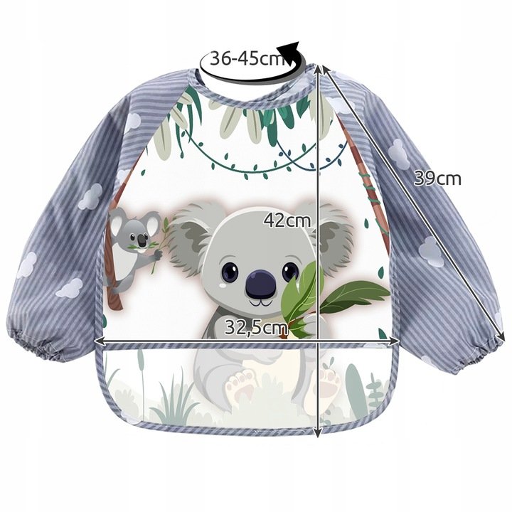 Keď fľaša mlieka už nie je hlavnou potravou dieťaťa a jedálniček sa mesiac od mesiaca zvyšuje – je to znamenie, že je čas kúpiť podbradník. Aby bol vstup do tejto novej etapy pre vášho drobčeka čo najjednoduchší, oplatí sa mu zaobstarať neobvyklý podbradník s rukávmi a vreckom. Vďaka výrazným farbám a veselému obrázku malé pandy povzbudia vaše dieťa k objavovaniu chuťových záhad a kulinárskym výzvam. Špecifikácia: farba: odtiene šedej a hnedej materiál: oxford , polyester, PVC dĺžka rukáva: 39 cm šírka krku: 36-45 rozmery: 42 x 32,5 cm hmotnosť: 43 g balenie : 45 g