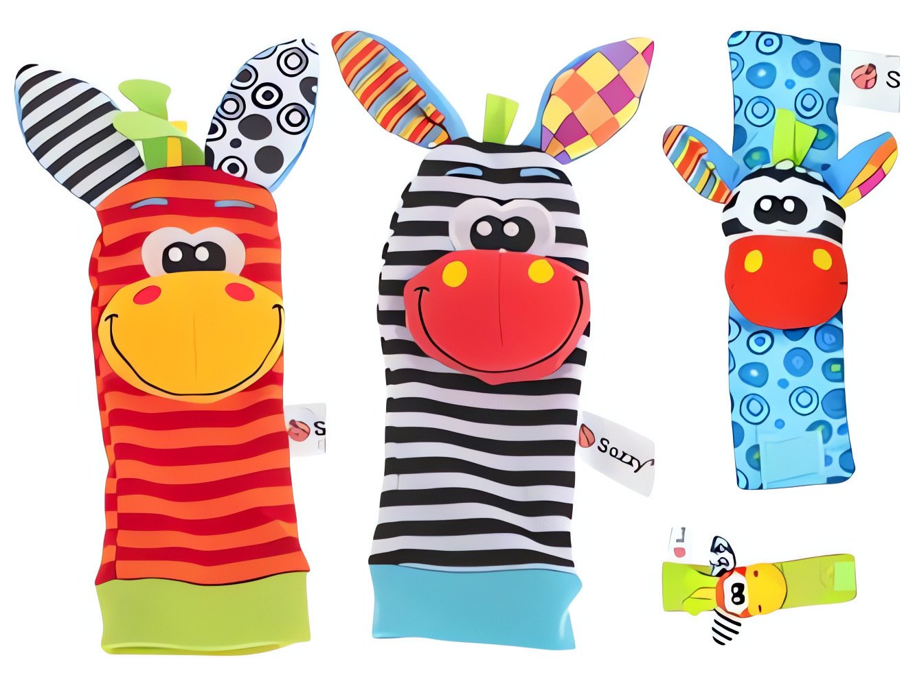 S touto súpravou hrkajúcich ponožiek a náramkov stimulujte predstavivosť a zmysly svojho dieťatka a zapojte ho do skvelej hry, ktorá podporí jeho rozvoj!Rozmery: