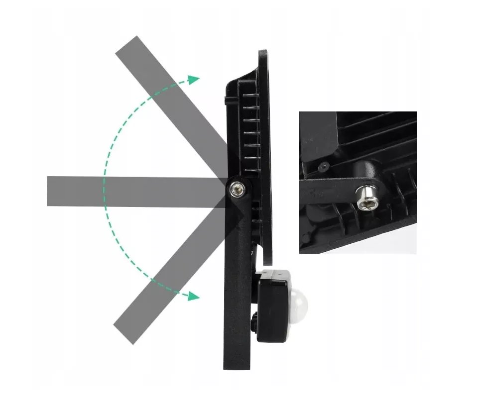 Vysokokvalitný LED svetlomet so senzorom pohybu v pevnom hliníkovom kryte.