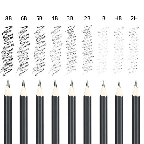 18 skicovacích ceruziek (2H / HB / B / B2 / B3 / B4 / B5 / B6 / B8)
