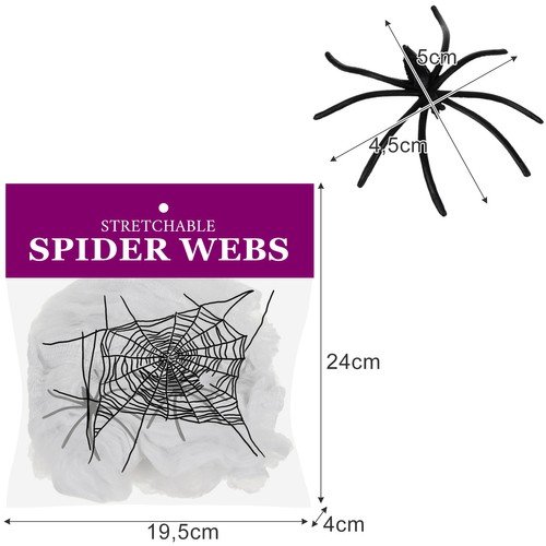 Biela pavučina veľmi verne reprodukuje vzhľad pavučiny, ktorý je možné pozorovať v prírodných podmienkach v tmavých pivniciach alebo v nenavštevovanej pôde po dlhú dobu. Ponúkaná umelá pavučina je navyše dodávaná s dvoma čiernymi plastovými pavúkmi, vďaka ktorým je dekorácia ešte desivejšia. Umelou pavučinou môžete ozdobiť tekvica, skrinky, lustre alebo desiatový stôl, pavúky postaviť na viditeľné miesto.