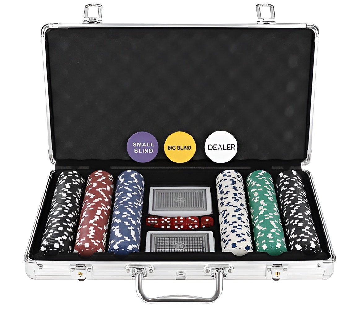 Fantastická kompletná sada pre hranie Texas hold'em pokru a ďalších kartových hier. Súprava obsahuje všetko, čo potrebujete k hre. Žetóny majú zodpovedajúcu váhu a sú vyrobené z plastu s kovovým diskom vo vnútri, vhodné pre dílerskej show, Texas Holdem poker, ruletu a ďalšie.