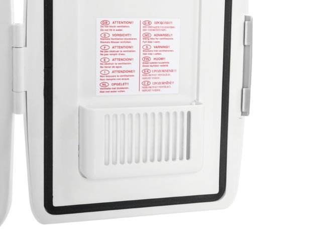 minichladničku je ideálnym riešením, keď potrebujete viac priestoru na chladenie. Vďaka 12V adaptéra do automobilovej zásuvky ju možno použiť aj v osobných vozidlách alebo na lodiach. Pojme až 6 plechoviek nápojov. Môže tiež udržiavať jedlo a nápoje teplé.