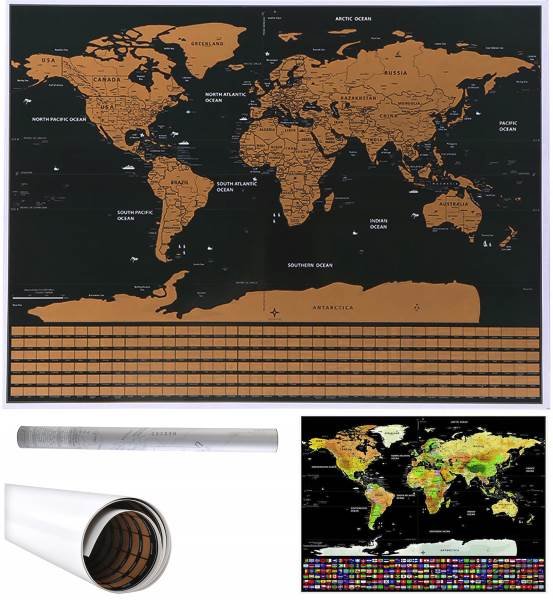 Každá krajina pod hliníkovou vrstvou je farebne vyznačená, takže si môžete na mape vyznačovať miesta, ktoré ste už navštívili, či miesta, ktoré by ste si priali vidieť. Stieracia mapa sveta sa hodí ako darček deťom, ktoré sa práve v škole v zemepise učia o jednotlivých štátoch.