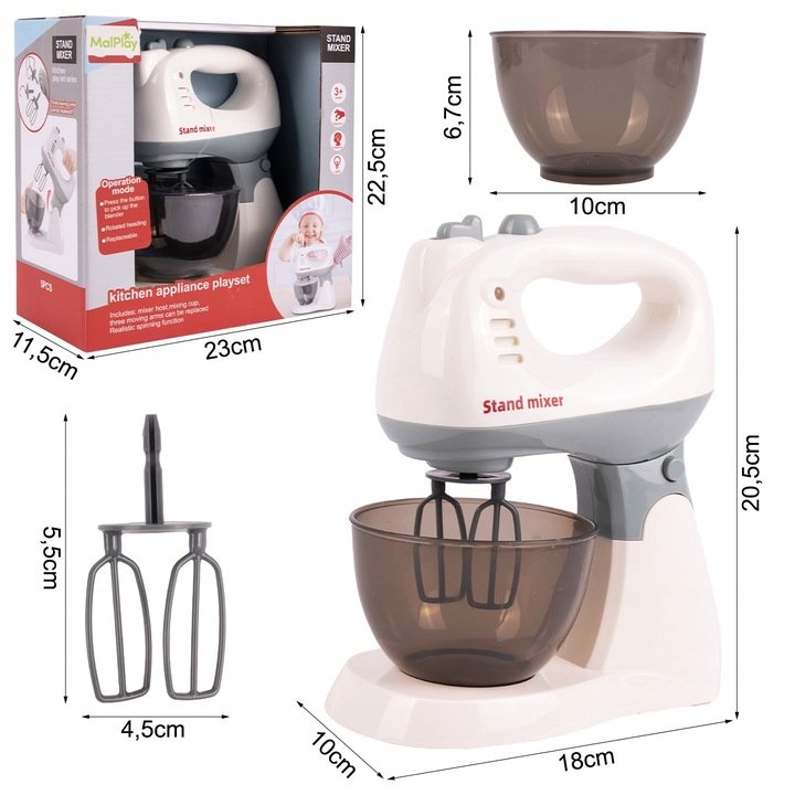 Malý kuchynský robot - mixér na hranie je dokonalým doplnkom pre všetkých malých kuchárov a cukrárov! Tento realisticky vyzerajúci detský mixér verne napodobňuje skutočný kuchynský spotrebič - otáča metlami, má odnímateľnú misu a prepínač rýchlosti. Deti sa naučia základy varenia a zároveň si rozvíjajú predstavivosť, motoriku a koordináciu rúk.