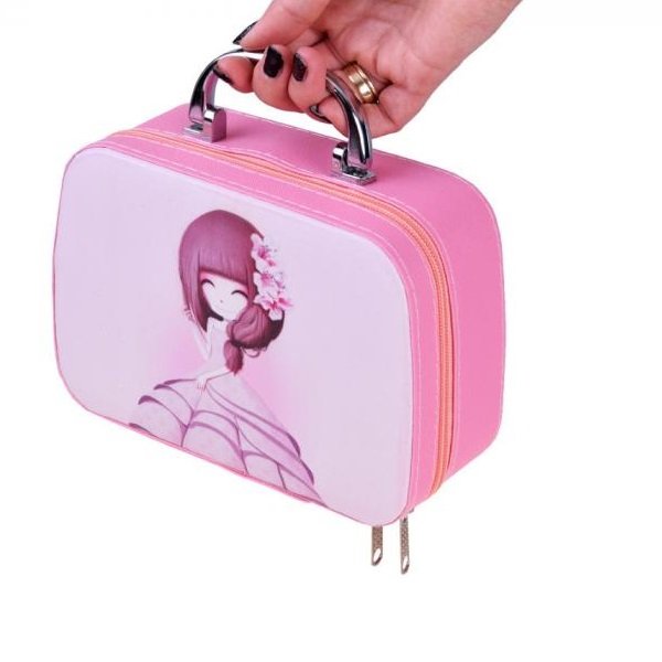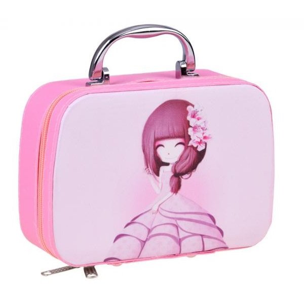 Všetko je prehľadne uložené v ružovom kufríku s pevnou rukoväťou a zabudovaným zrkadlom, ktorý je ideálny na hranie doma alebo na cestách.