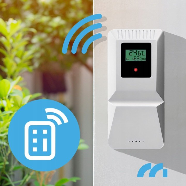 Zariadenie podporuje až tri bezdrôtové senzory teploty a vlhkosti, čo vám umožňuje sledovať počasie na viacerých miestach súčasne – napríklad v záhrade, v garáži alebo v skleníku. Jeden senzor je súčasťou sady.