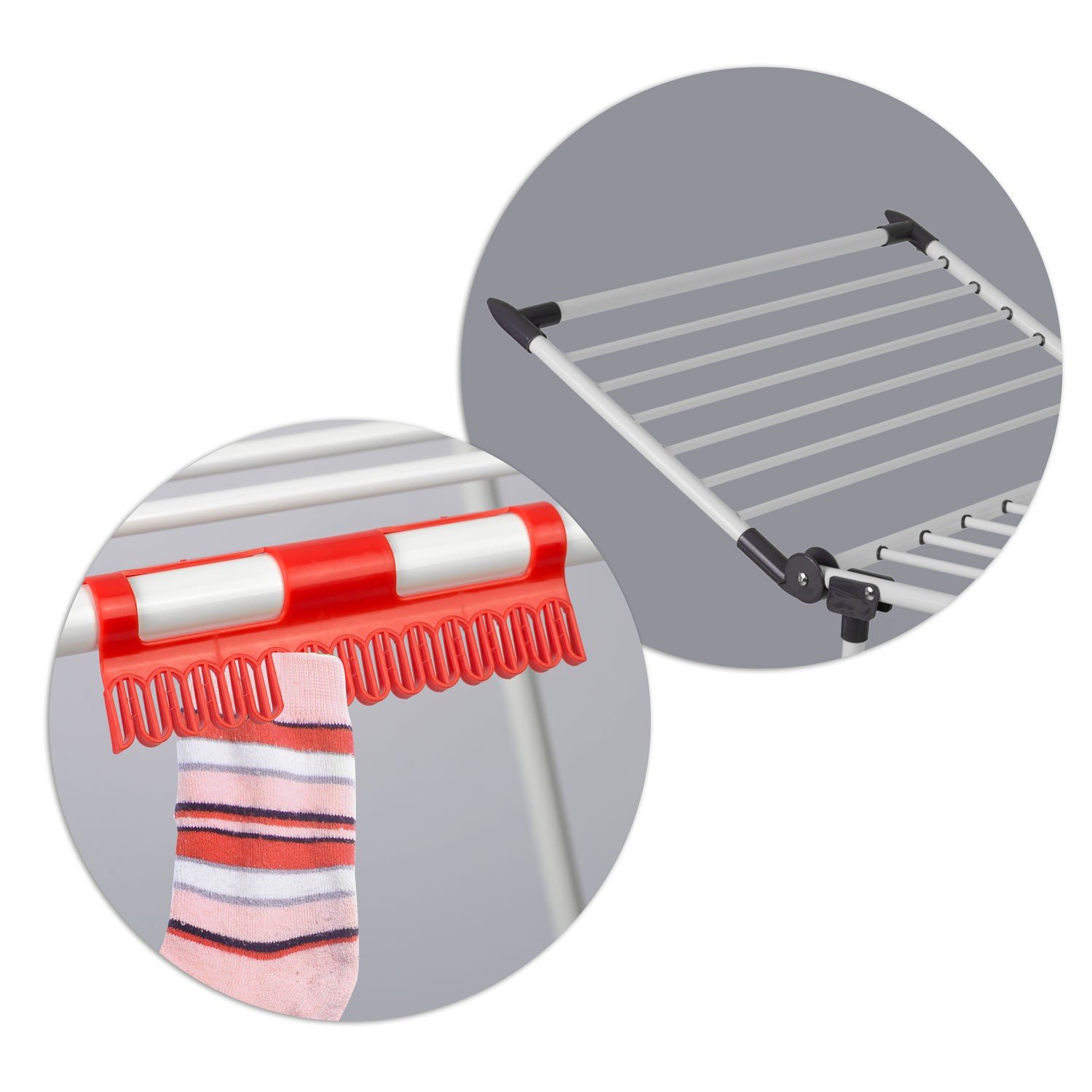 - Praktické riešenia: priestorovo úsporné vešiaky na bielizeň, skladacie/rozkladacie ramená, protišmykové nožičky