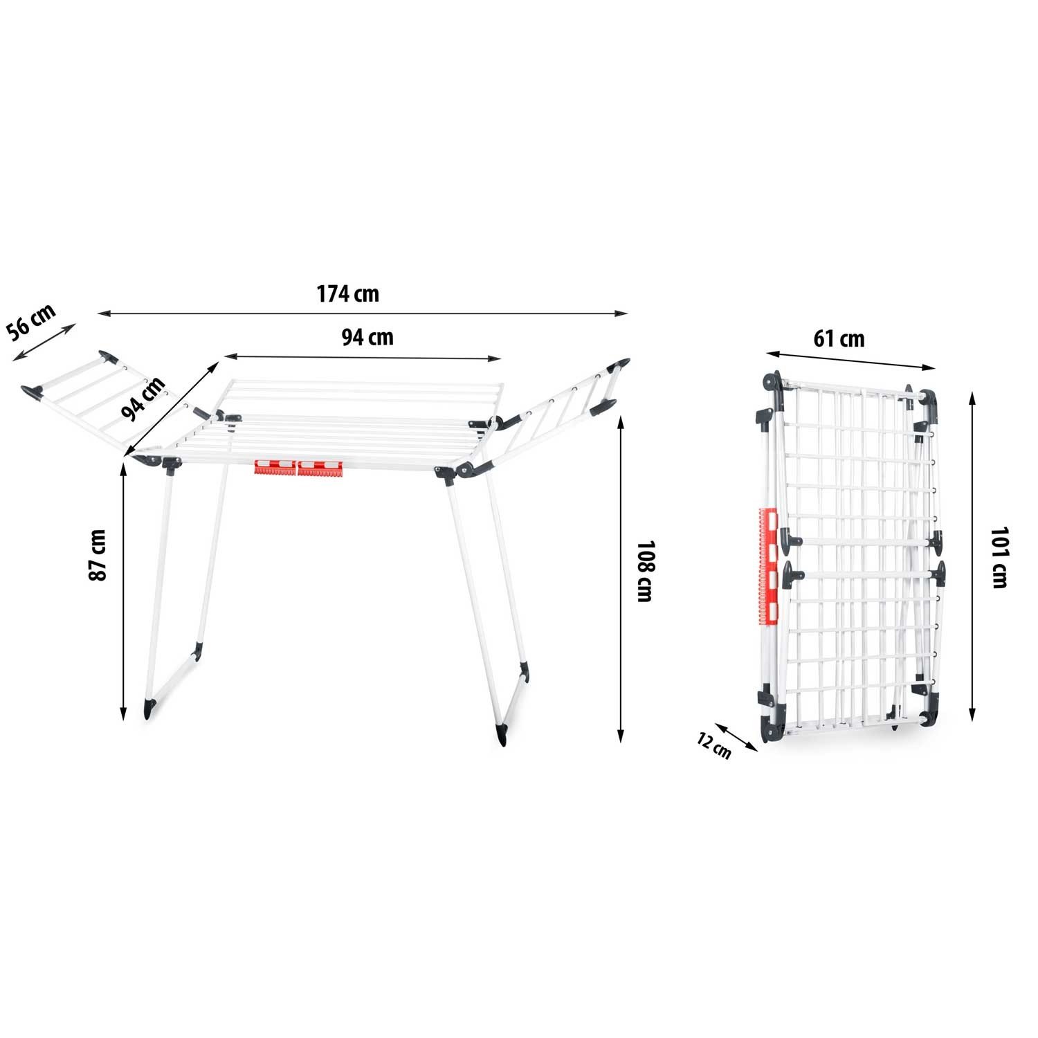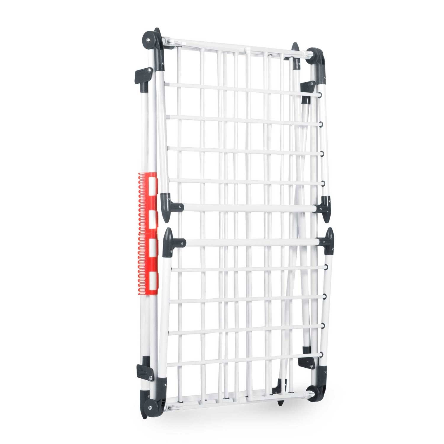 Skladací sušiak na bielizeň Massido Lina v bielej farbe ponúka veľkorysú sušiacu plochu 22 m² pre jednoduché a rýchle sušenie celej náplne bielizne. Model Lina je navrhnutý tak, aby kombinoval praktickosť a odolnosť – jeho robustná kovová konštrukcia zaisťuje stabilitu a vďaka premyslenému dizajnu sa sušiak dá rýchlo rozložiť a zložiť. Štyri skladacie krídla rozširujú priestor presne tam, kde je to potrebné. Tyče sú rozmiestnené tak, aby medzi bielizňou mohol prúdiť vzduch, voda sa rýchlo odparovala a sušenie bolo rovnomerné. To znamená, že bielizeň je po vysušení pripravená na zloženie. Hrubé tyče pomáhajú redukovať zbytočné záhyby.