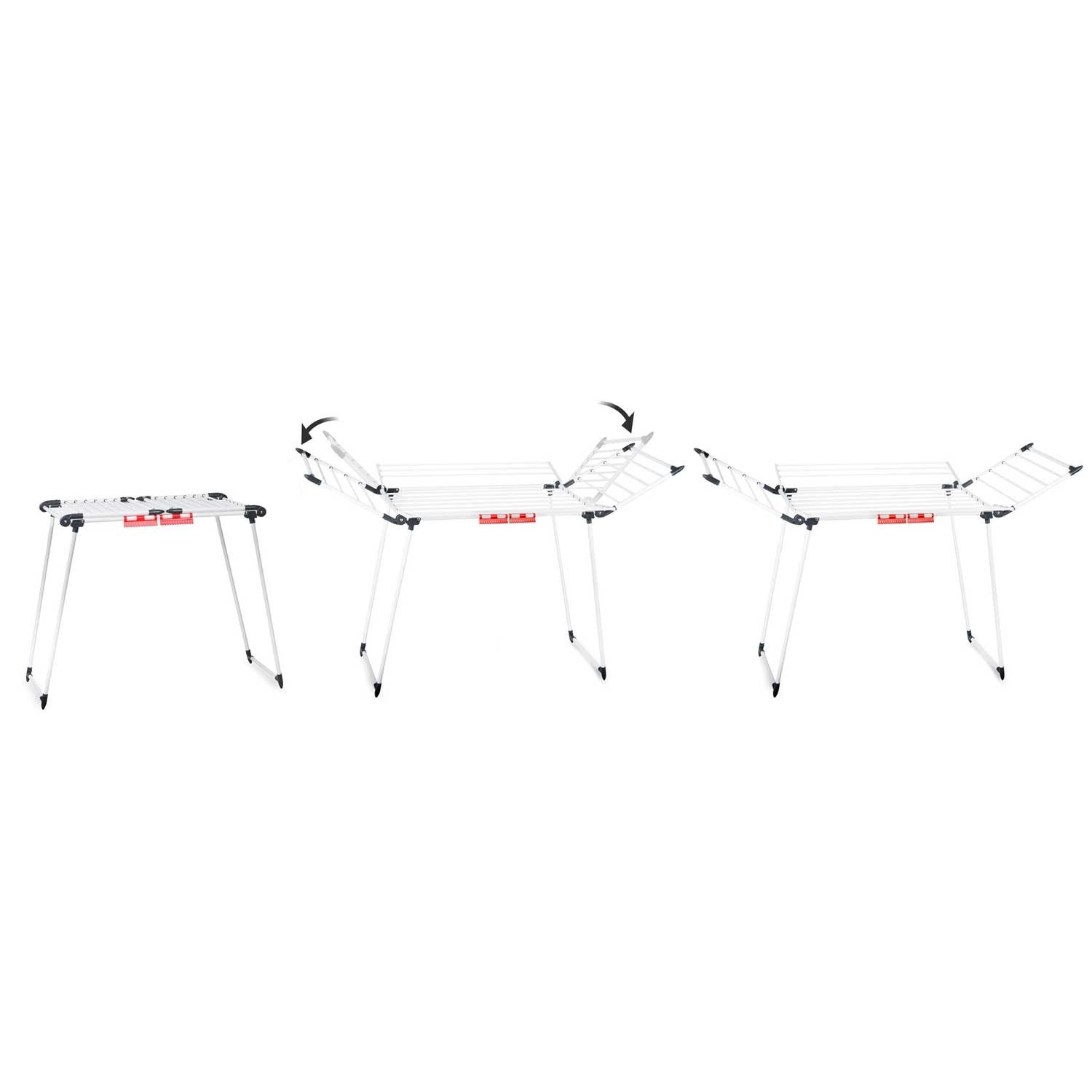 Používajte na rovnej a stabilnej ploche. Nezaťažujte sušiacu plochu nadmerne. Pri skladaní a rozkladaní buďte opatrní, pretože existuje riziko pricviknutia prstov. Uchovávajte mimo dosahu detí. Neležte ani nesedajte na výrobok.