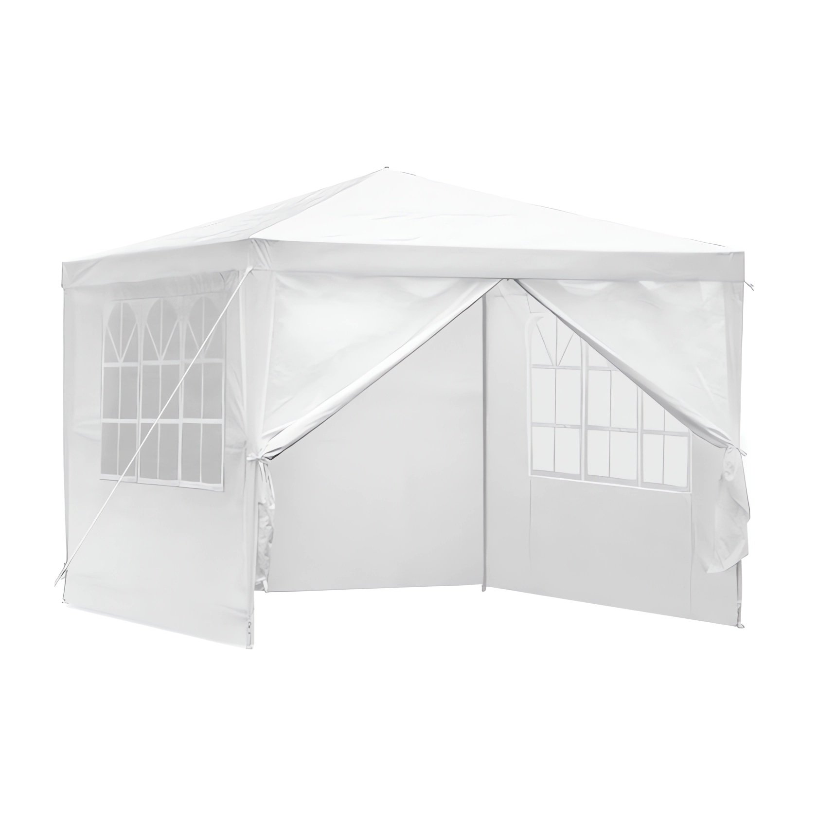Záhradný pavilón 3×3 m, 4 steny, kovová konštrukcia a PE plachta v bielej. MultiGarden.