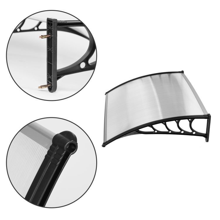 Tento praktický prístrešok nad vchodovými dverami (120 × 100 cm) chráni vchod do vášho domu alebo firmy pred dažďom, snehom a slnkom. Výplň je vyrobená z odolného polykarbonátu s hrúbkou 0,5 cm a rám je vyrobený z pevného plastu, ktorý zaručuje stabilitu a dlhú životnosť. Balenie obsahuje montážnu sadu, vďaka ktorej je inštalácia rýchla a jednoduchá. Strecha je vhodná nielen pre rodinné domy, ale aj pre komerčné vchody, kde zvyšuje komfort návštevníkov za nepriaznivého počasia. Špecifikácie: Rozmery strechy: 120 × 100 cm>Materiál: polykarbonát + plast