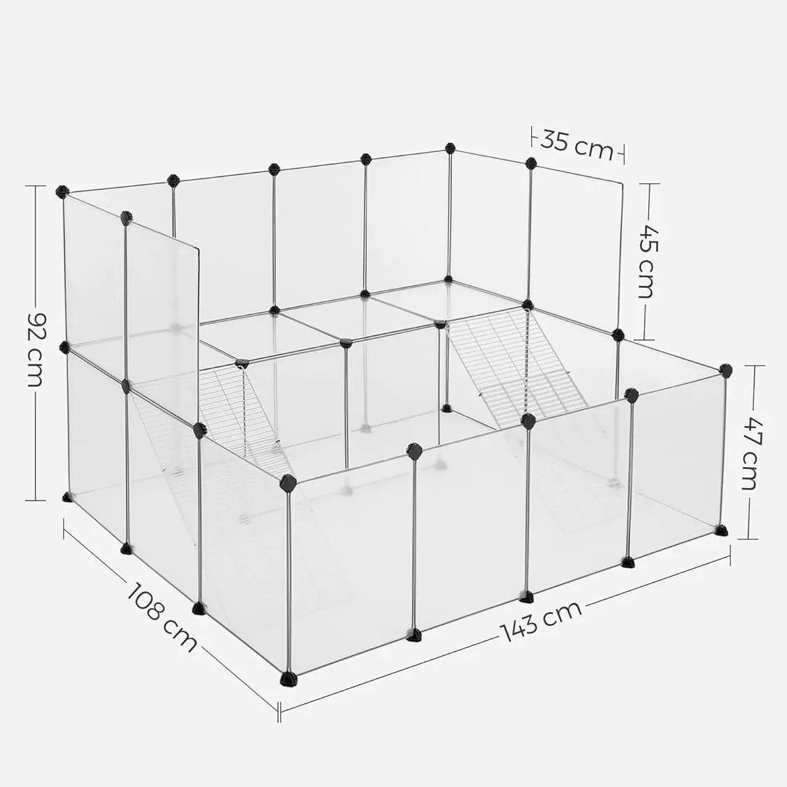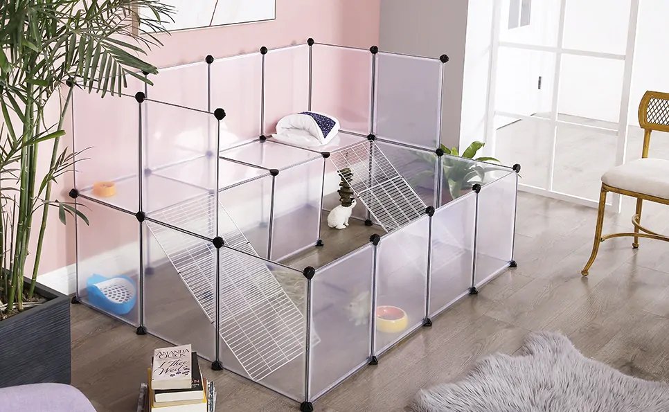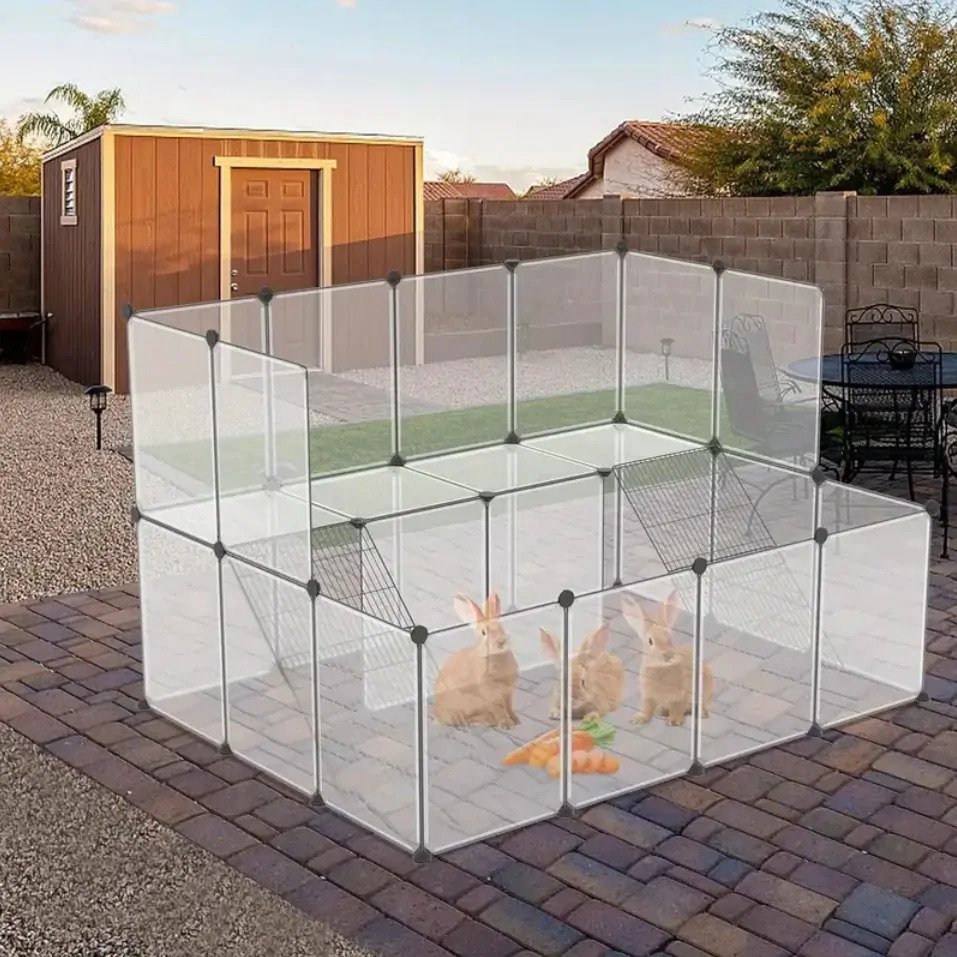 Modulárna, samorozkladacia ohrádka. Poskytuje bezpečnosť pre králiky, morčatá, mačky, psy a iné malé zvieratá.