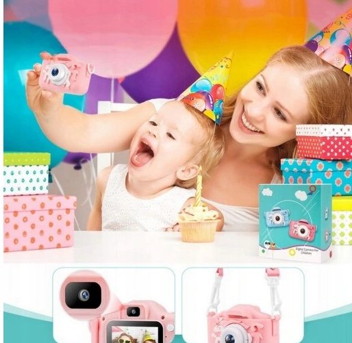 2 ″ LCD displejfotoaparát pre najmenších! 2v1 - okrem možnosti zhotovovania snímok umožňuje aj záznam vo Full HD so zvukom! Zariadenie vám umožňuje použiť rôzne filtre na fotografie, tj. Čiernobiele fotografie, sépia, rôzne verzie negatívu. Má schopnosť zhotovovať sériové fotografie. Okrem toho existuje veľa rámčekov, ktoré oslovia každé batoľa, ako sú hračky, narodeninové balóniky, medveď so včelami, mraky a mnoho ďalších. Vďaka jednoduchému ovládaniu a vysokej kvalite zhotovovania fotografií a videí bude dieťa rozvíjať kreativitu a výtvarné cítenie a zároveň sa bude skvele baviť.