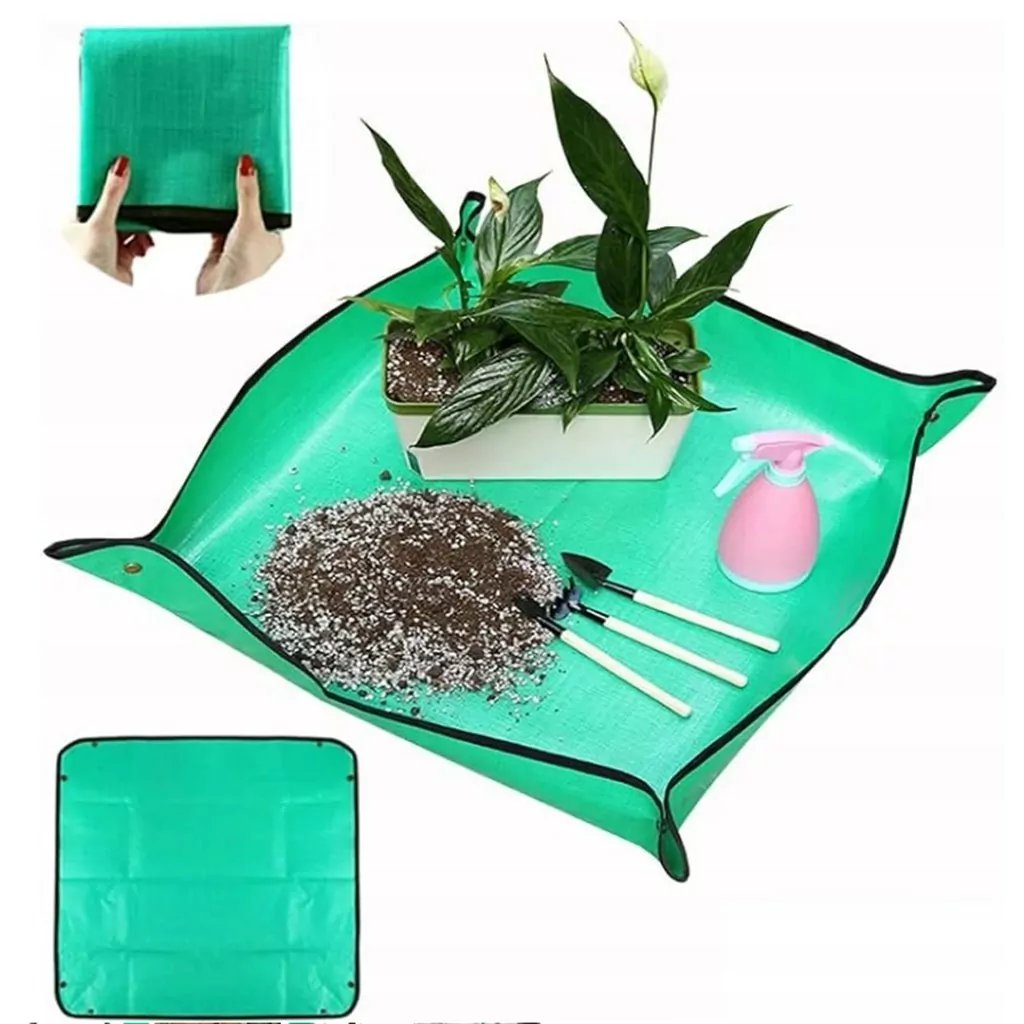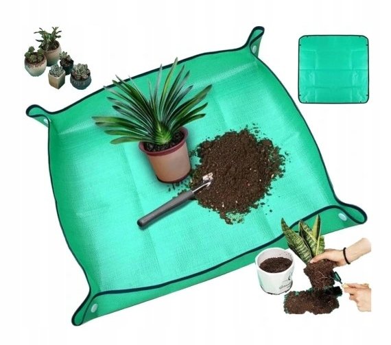 Podložka na presádzanie s rozmermi 100 x 100 cm je neoceniteľnou pomôckou pre každého dobrého záhradníka. Pri presádzaní a sadení rastlín, odstraňovaní buriny alebo aj len pri čistení kvetináčov či váz. Podložku možno používať vonku aj v interiéri. Je vyrobená z odolnej, pevnej a nepremokavej PE tkaniny, ktorá je veľmi dobre umývateľná, takže ju môžete používať opakovane. Vďaka tŕňom v rohoch rohože je rohož uzavretá do seba a má zvýšený okraj, takže sa zemina nerozlieva po okolí a voda z nej nesteká.