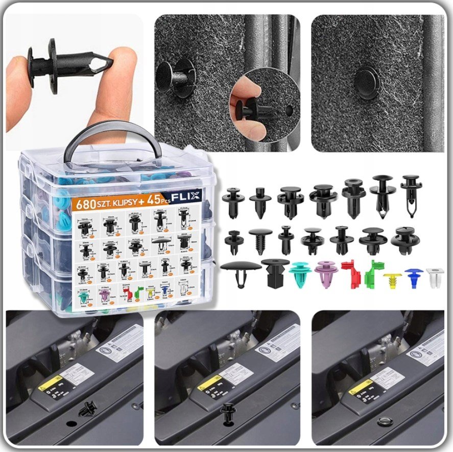 Udržujte svoje auto alebo motocykel vo vynikajúcom stave s touto mimoriadne praktickou sadou klipov. Neuveriteľný výber veľkostí a tvarov uspokojí všetky vaše potreby. Praktická sada klipov udrží vaše auto alebo motocykel vo vynikajúcom stave. Všetky základné veľkosti v jednom balení.