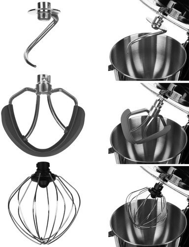 Kuchynský robot je užitočné zariadenie v každej kuchyni. Je vybavený 3 doplnkami ako sú: hnetací hák s nepriľnavým povrchom, šľahač s nepriľnavým povrchom a nerezová metla.