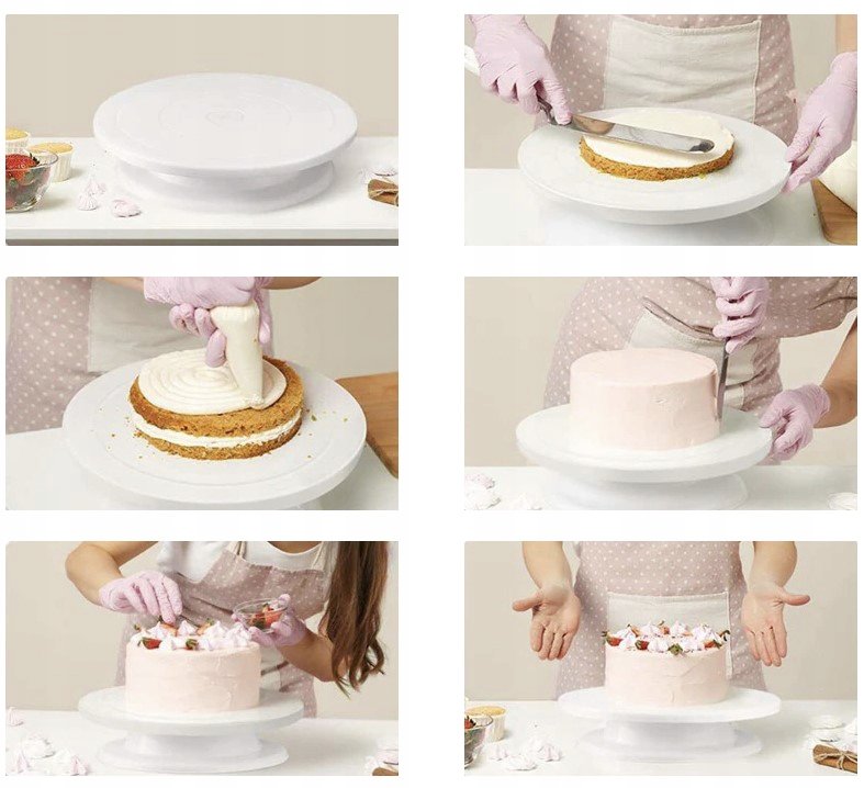 Tento vysoko kvalitný otočný tanier vám umožní zdobiť torty na najvyššej úrovni. Je vhodný aj na servírovanie tort, dezertov, ovocia a iných lahôdok.