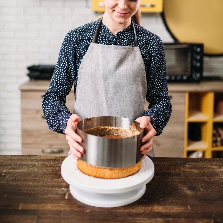 Okraj má výšku 15 cm, vďaka čomu je ideálny na prípravu viacvrstvových tort a vysokého pečiva. Výška je označená stupnicou od 0 do 20 cm, čo umožňuje presné nastavenie úrovní pri príprave viacvrstvového pečiva.